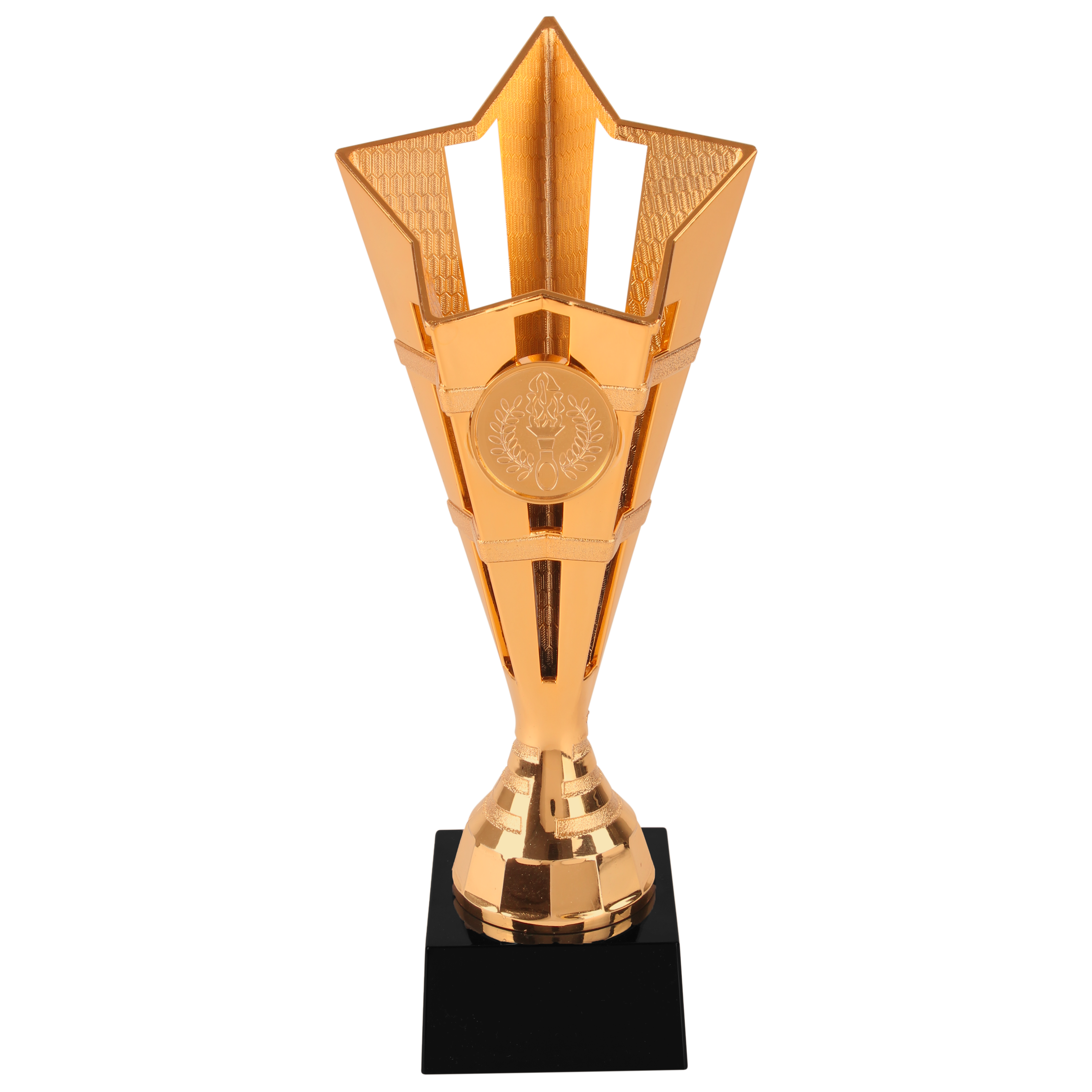 Beker verkrijgbaar in goud, zilver en brons, afmeting 20,5 cm