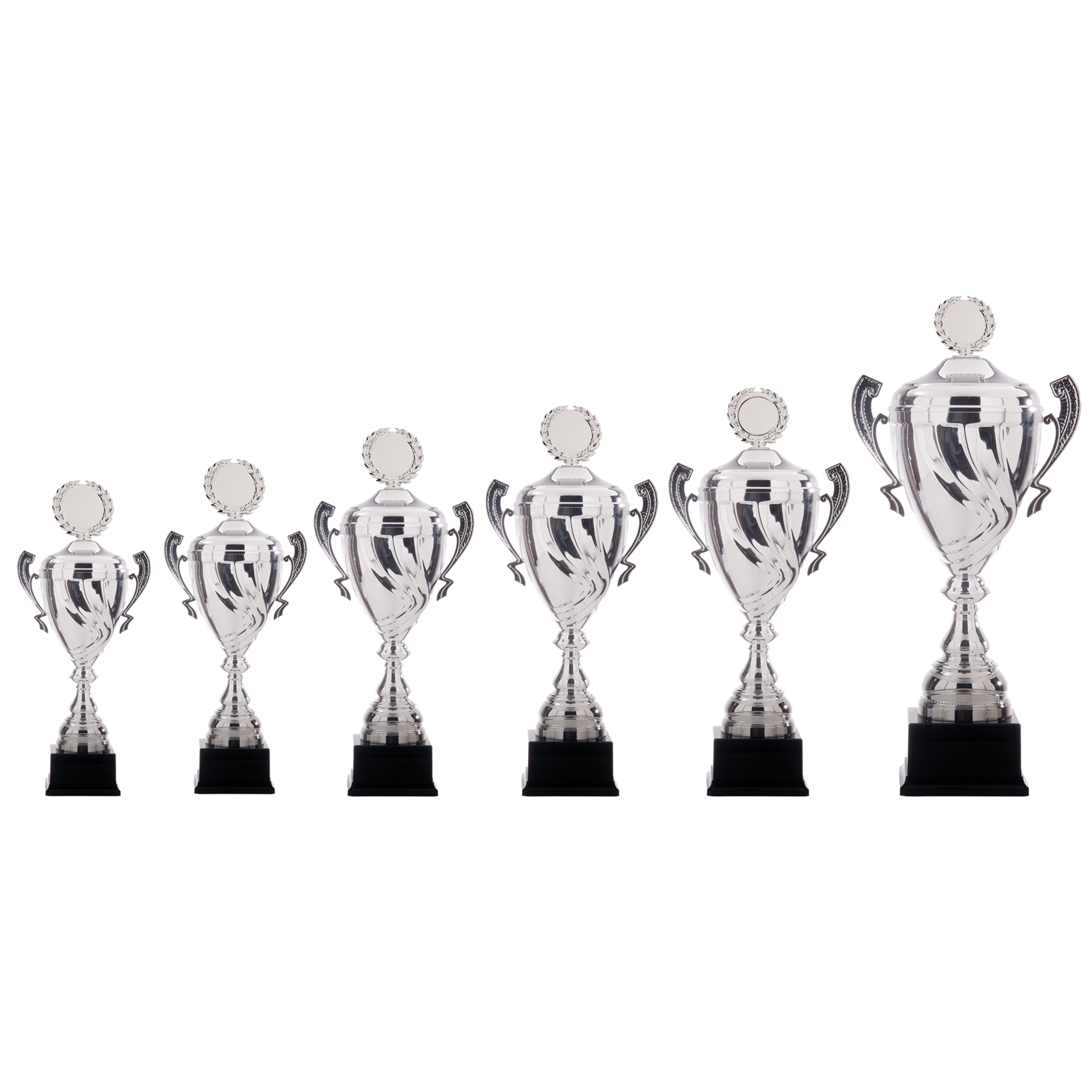 Grote luxe zilverkleurige beker verkrijgbaar in 6 afmetingen.