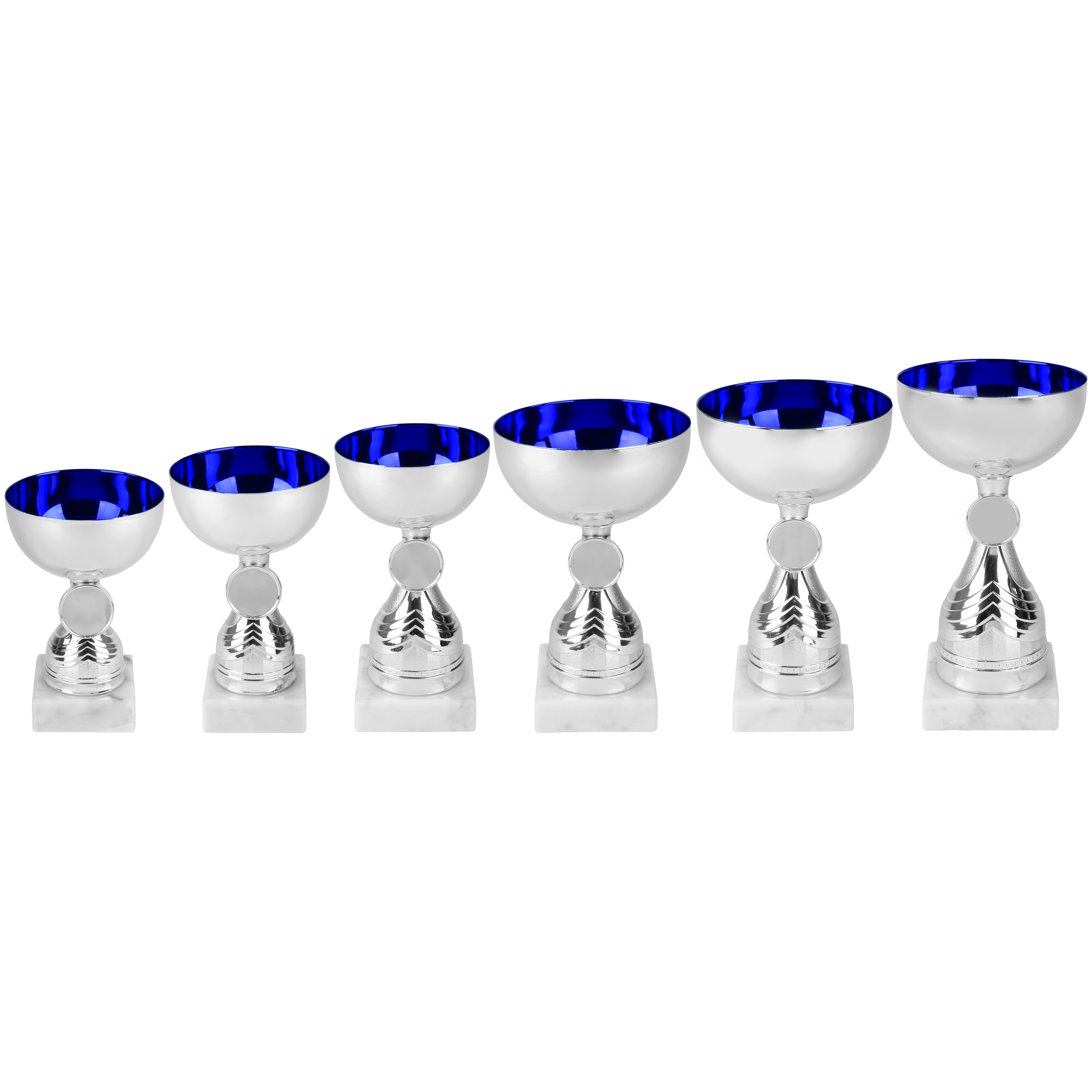Zilver met blauw beker, verkrijgbaar in 6 afmetingen.