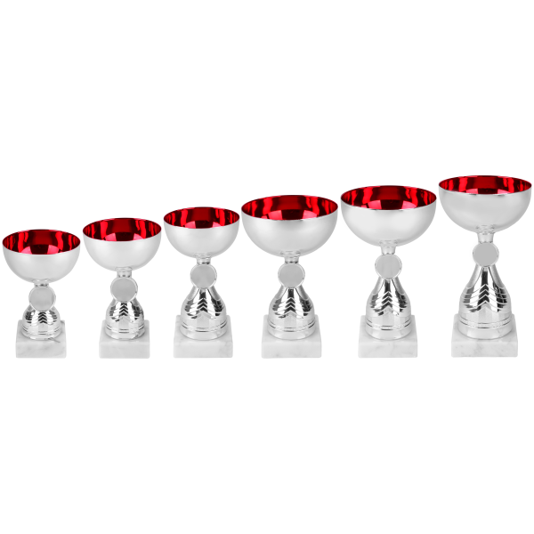 Zilver met rood beker, verkrijgbaar in 6 afmetingen.