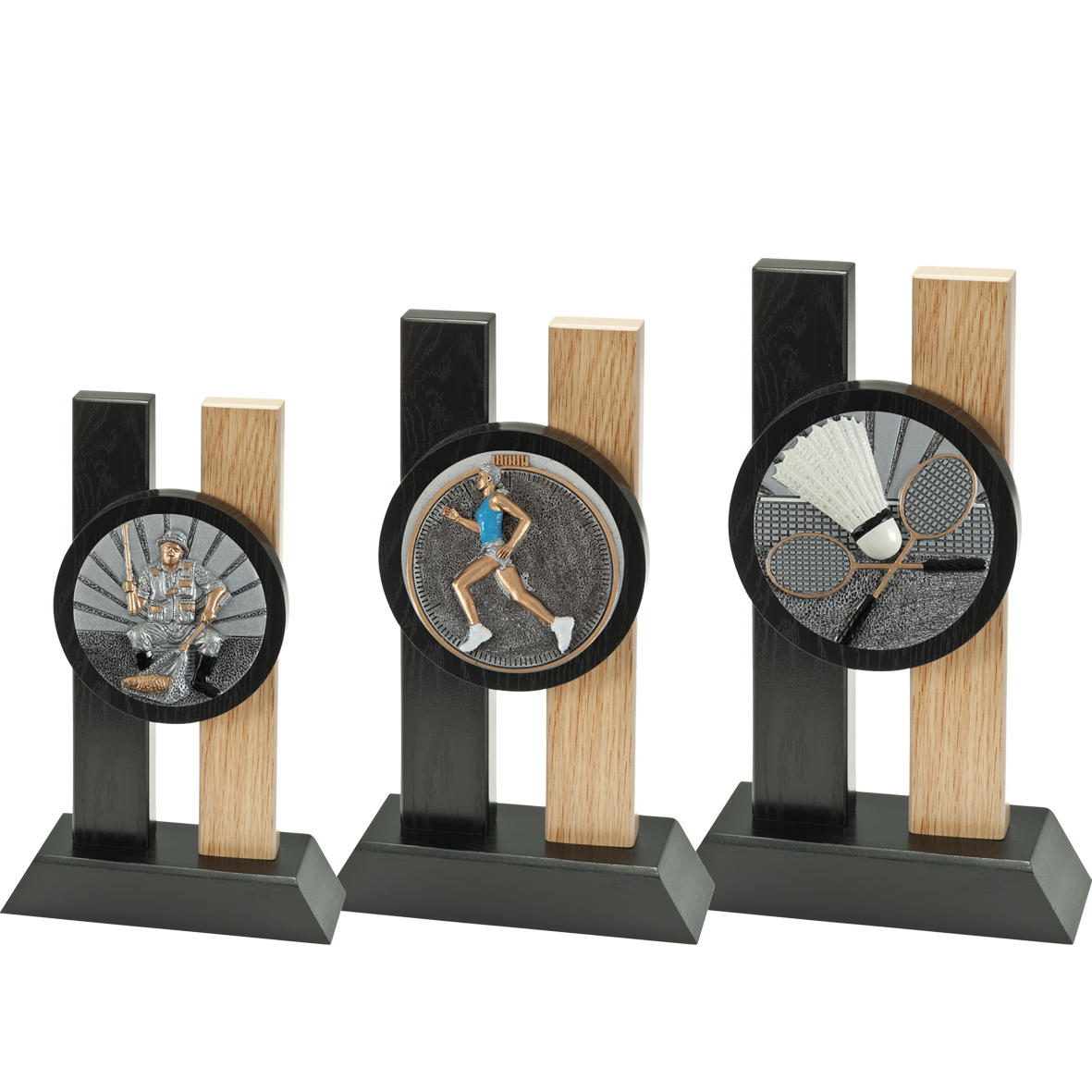 Houten standaard verkrijgbaar in 3 afmetingen en met verschillende sportfiguren.